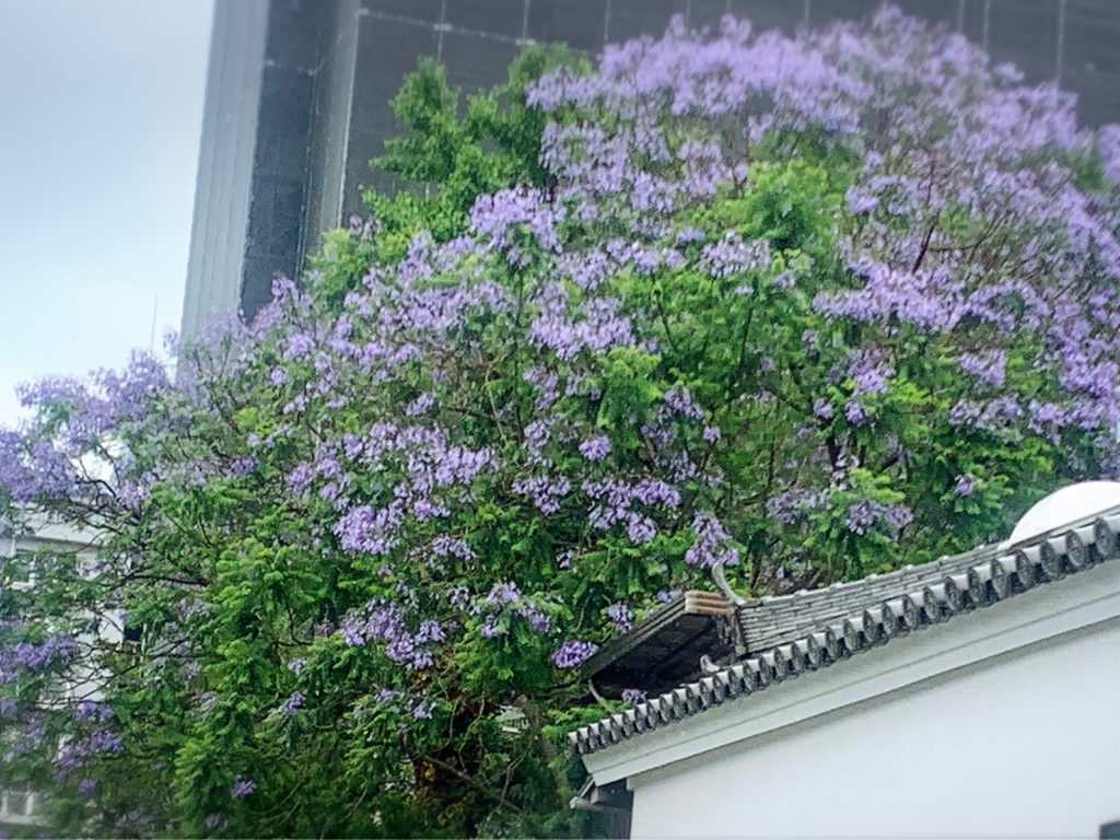 少し前に咲いていたジャカランタという木の花。曇り空だけど、爽やかな気分になれる紫色のお花。しばし立ち止まって見入ってしまいました。梅雨の蒸し暑さも和らぎました。